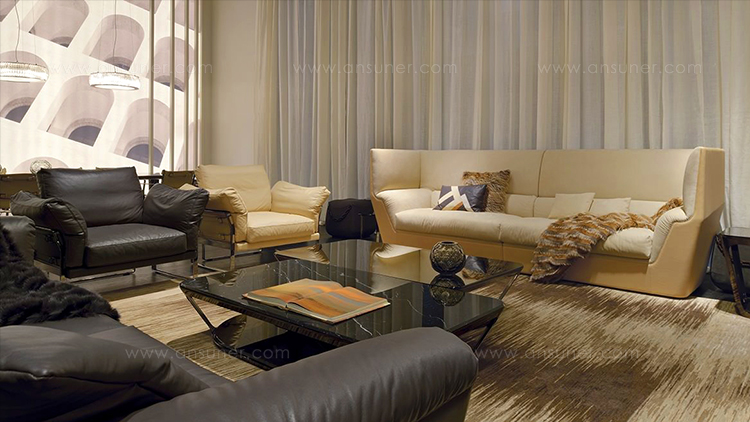 皮埃尔咖啡和侧桌的特点是整体的顶部和框架在减少的厚度。它们有一个外部金属“皮肤”,有大的开放表面和深灰色的表面。这种轻盈,加上稳定性,在表面上很明显,似乎漂浮着,有复杂的地面细节,都是缎质玻璃和珍贵的大理石。