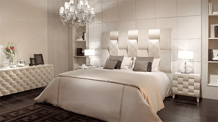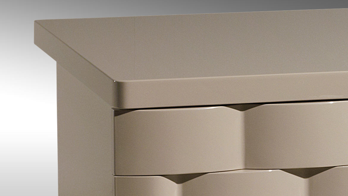 DRAWERS Wood with wavy effect tri-dimensional pattern glossy lacquered or covered in coordinated leather