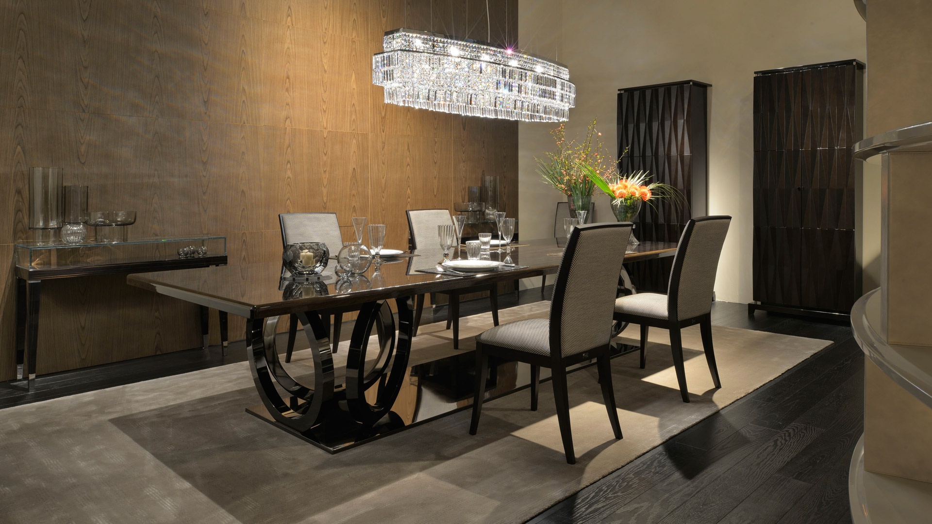 TOP Lacquered wood or veneered with Ebony Macassar, Rosewood or Rosewood Dark* with glossy brushed finishing (veneering inlays 4/4)