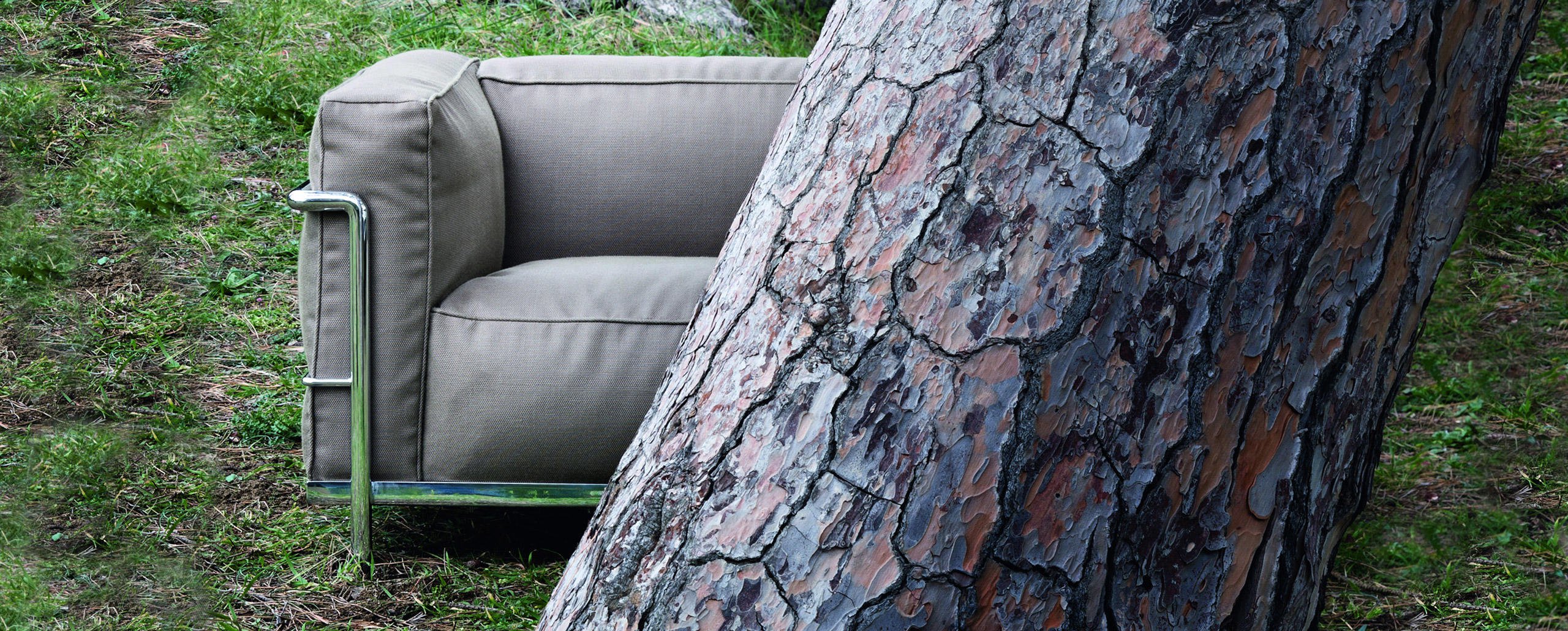 Fauteuil Grand Confort, 又称LC3。采用CR3三价镀铬钢材质或光泽玄武岩搭配灰色、亮蓝、绿色、枣红及赭色或哑光黑色珐琅钢架的双扶手椅和左/右单扶手椅及两人位/三人位沙发。柔软的衬垫采用聚氨酯海绵和喷胶棉或聚氨酯芯羽绒棉。皮革或布艺面料软包;镀铬框架结构可由布艺软包。同样有户外版本。