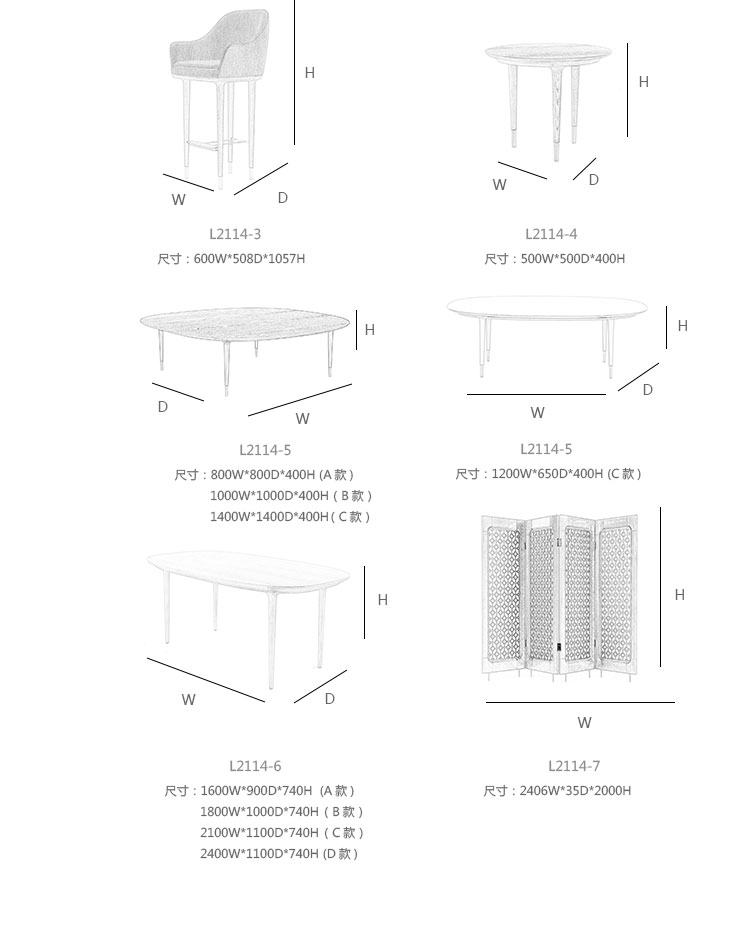 1600W*900D*740H (其余尺寸见详情)