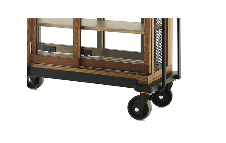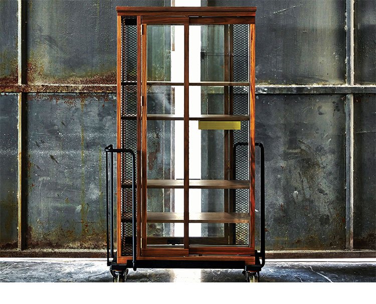 带玻璃门的木柜是从KIHARA陶瓷烧制金属手推车受启发设计,推车进入火炉,该炉代表着我们在生活中都会遇到的考验和磨难,从中我们贡献的汗水和泪水,痛苦和快乐。然而,正是通过燃烧这些罪恶和秘密,我们得以洗净。秘密揭晓或深藏起来,皆取决于我们自己。