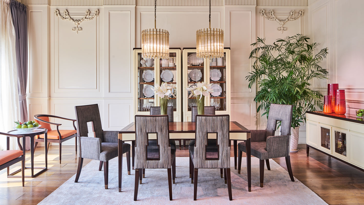 布包饰工艺,由经验丰富的技师手工独立完成,确保美观、耐用又符合人体工程学;铜脚,赋予中式韵味的同时以防磨损。线型具有浓郁的Art deco风格,现代简洁又充满艺术调性,背部镂空部位方便搬动。