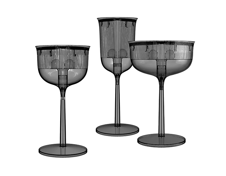 这款经典的水晶玻璃从原来的比例中拿出来,变成了三种不同形状的台灯,类似于香槟长笛、高脚杯和圣杯。