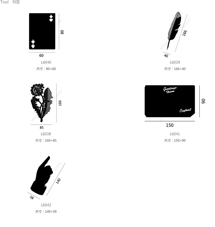 Tool 小丑书签 系列尺寸/示意图
