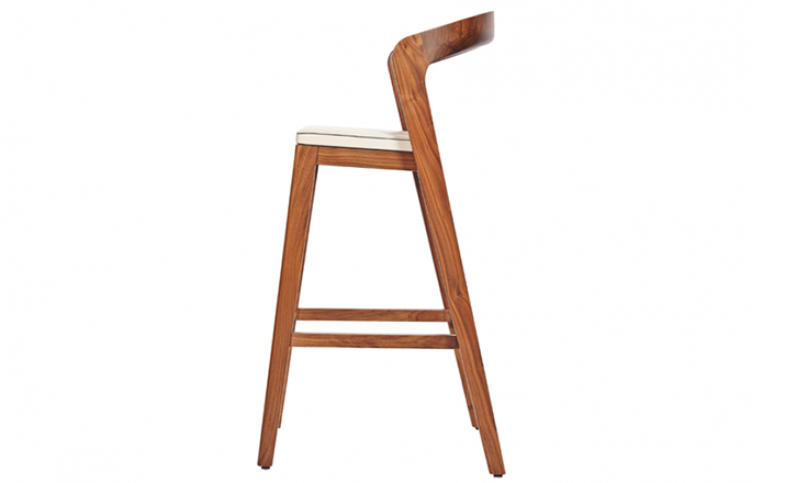 Sustainable,comfortable bar stool.Thanks to its sexy and elegant design this barstool can decorate each kitchen table.The rounded backside operates perfectly as arm rest.The feetrest comes with stainless steel cover.