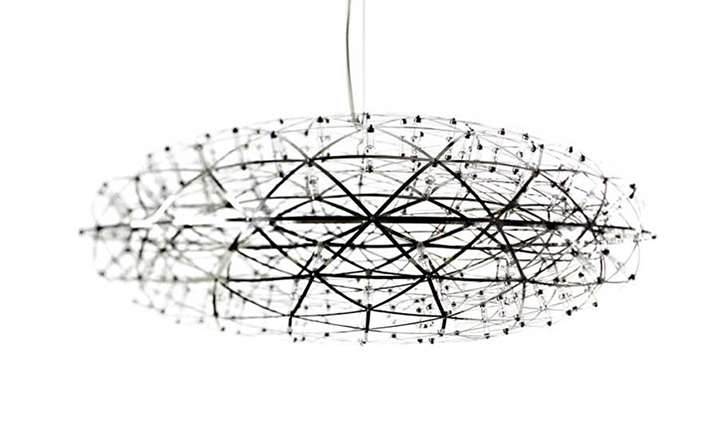 "The Raimond lamp:a perfect sphere of mathematical ingredients punctuated by tiny led lights. Looking at the lamp feels like staring into the soft glow of a starry night. Into the essence." Material: Stainless ‘spring steel