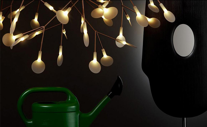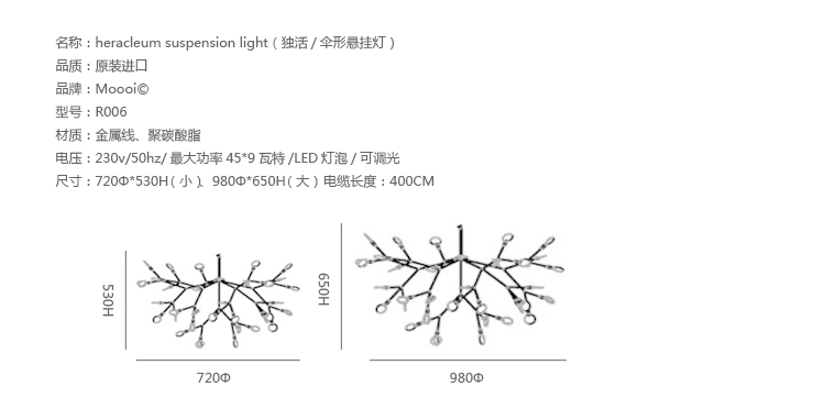 The decorative LED lamp inspired by the Heracleum Plant now comes in two sizes. Theleaves ramify from a branch creating a very technixal,natural structure,By using the technique of coating conductive layers.Adesign not possible with normal wires.