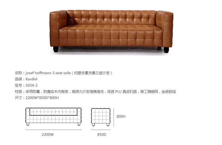 创意家具 - 坐具|沙发|办公家具|设计师家具|约瑟夫霍夫曼三座沙发