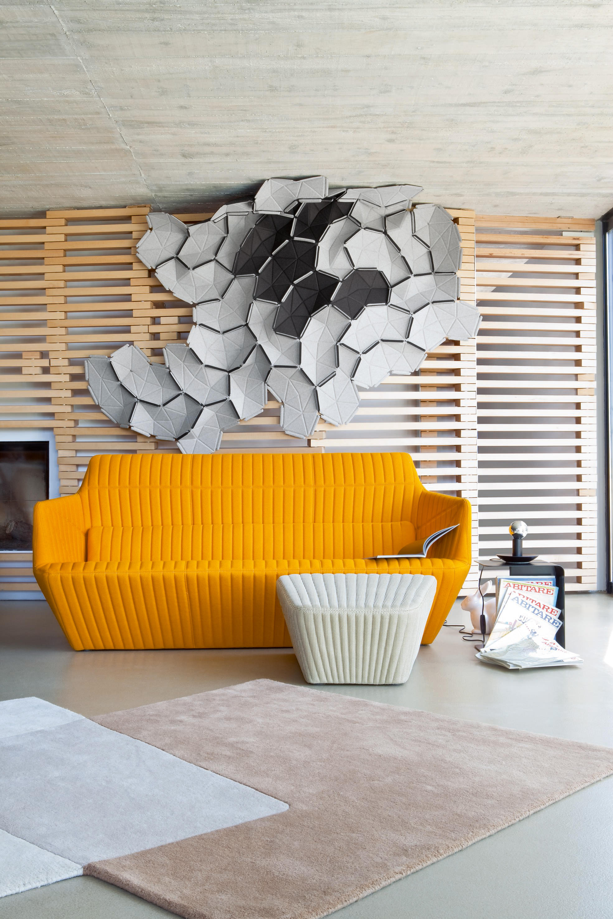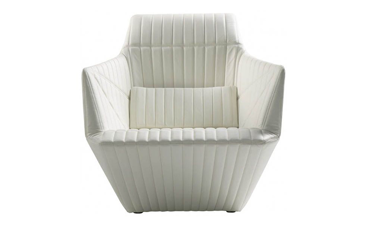 Facett沙发来自写意空间的设计师Bouroullec兄弟,其设计灵感来自于充满童趣的折纸游戏,所以我们能看到产品的造型具有几何色彩,丰富的折线仿佛随时会变出一个个多边形,给人意想不到的乐趣。写意空间Facett沙发不像多数布艺沙发那样走柔美温和路线,它刚毅硬朗的线条仿佛是轮廓分明的男子,给人坚毅的感觉。无论是暗灰还是明黄,冷色还是暖色,都传递出冷冽的质感。搭配在黑白空间里,是最合适的选择。除了造型,Facett沙发采用的布料也很特别,并没有追求植绒的细腻和棉布的柔软,进口布艺充满立体感,非常符合沙发造型的设计理念。家里摆放这么一款家具,即使不使用,单纯用来欣赏也是值得的。