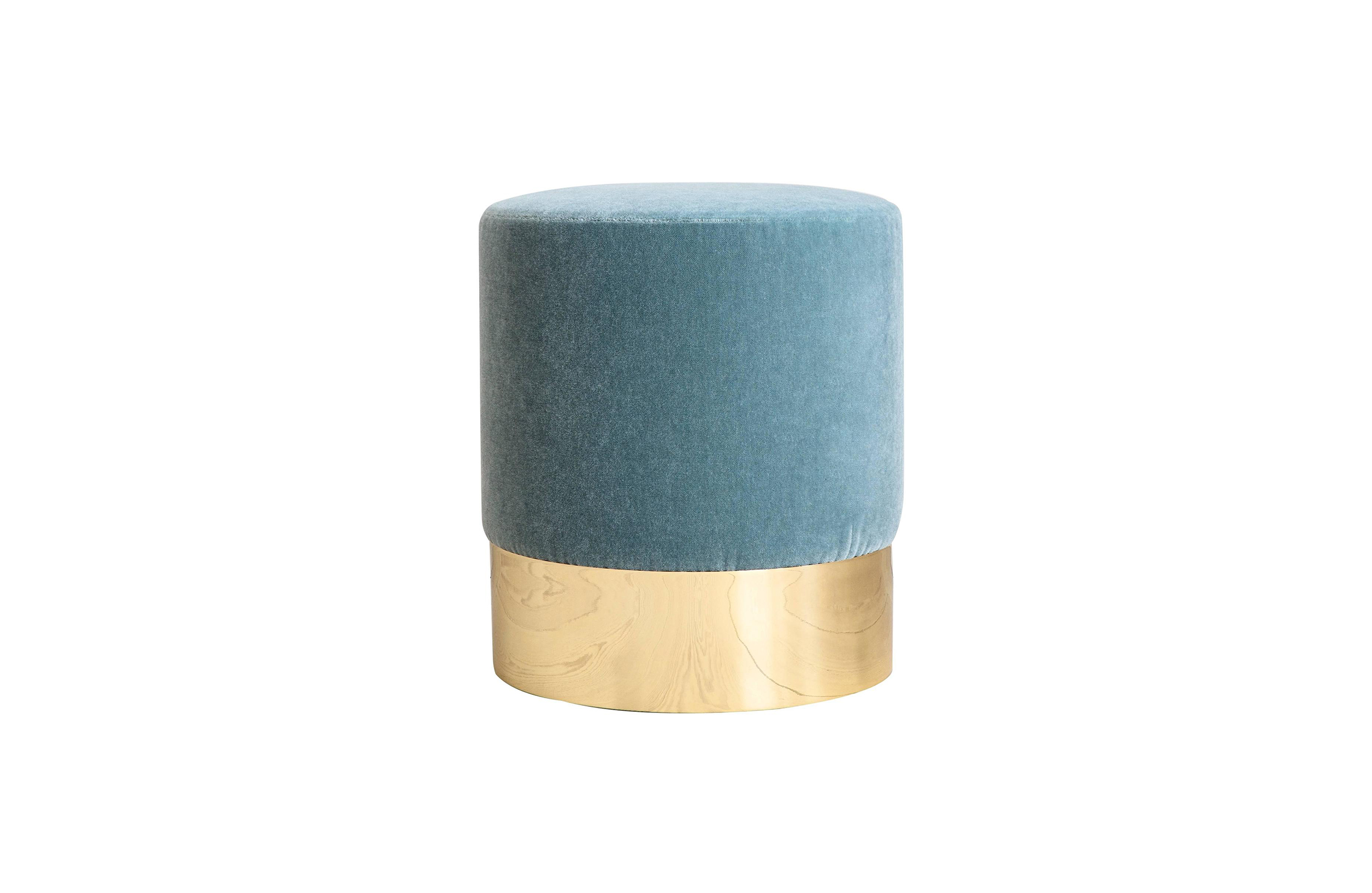 Azucena的凳子在Raf Simons Kvadrat纺织品上装饰。黄铜底座。1963年由Luigi Dominioni设计。Azucena的当代作品。