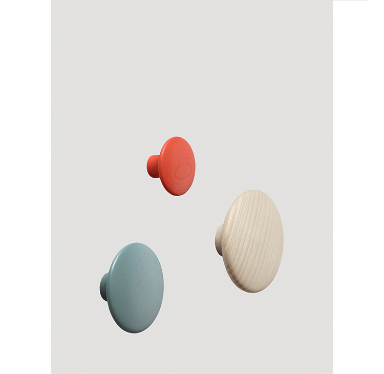 The DOTS,designed by Lars Tornoe,are already a design icon,having introduced a new perspective on the coat hook.Produced from high quality wood,The DOTS sculptured design can be arranged on the wall in exactly the pattern and colour combination that is desired.They are very versatile and can be used in multiple settings,including the entrance hall,bedroom and kitchen.