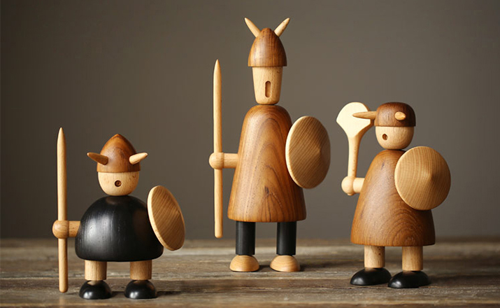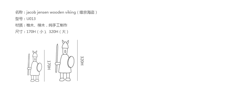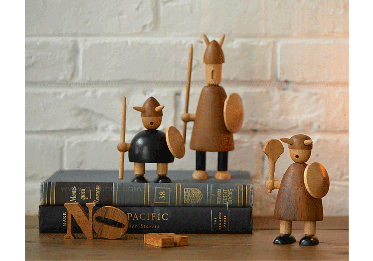 由于50年代的丹麦活跃着一股「斯堪地那维亚现代主义设计」风潮,延续低调简洁的风格并大量采用自然木材与传统工艺所迸出的美丽火花,设计大师Jacob Jensen也致力其中成为见证历史的大师之一。Jacob Jensen Wooden Viking(维京海盗)是经典的北欧形象,随着《加勒比海盗》系列电影的风靡,维京海盗在骁勇彪悍的传统形象里增加了俏皮、温暖、幽默的一面。这一组维京海盗形象为主题的北欧木雕设计,正是基于如此可爱的解读而做,摆在桌面上形成了饶有趣味的场景感,也是用来赠送的高档礼品。