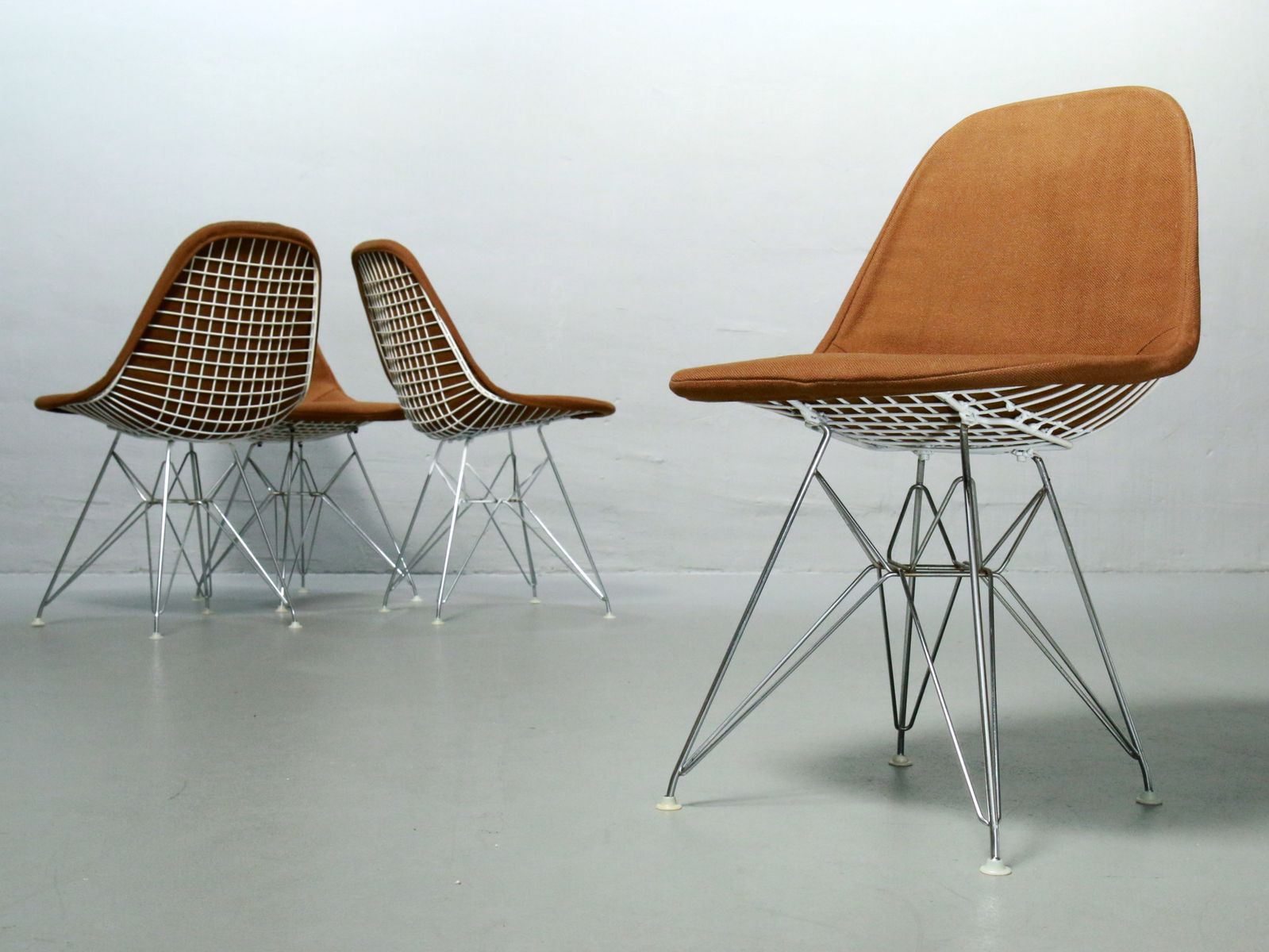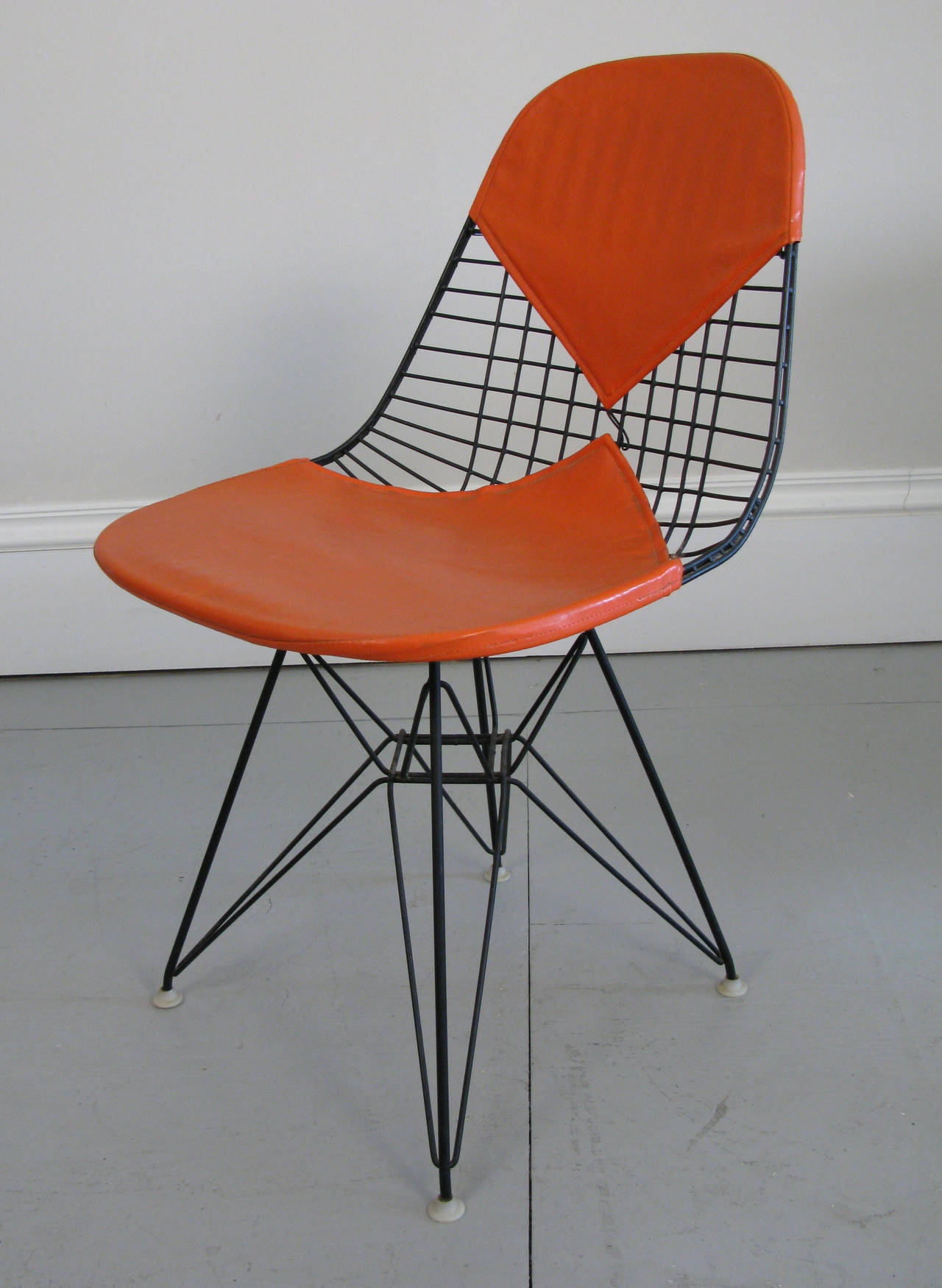 DKR 單椅結合了 Wire Chair 的網狀金屬椅座搭配鐵塔椅腳。