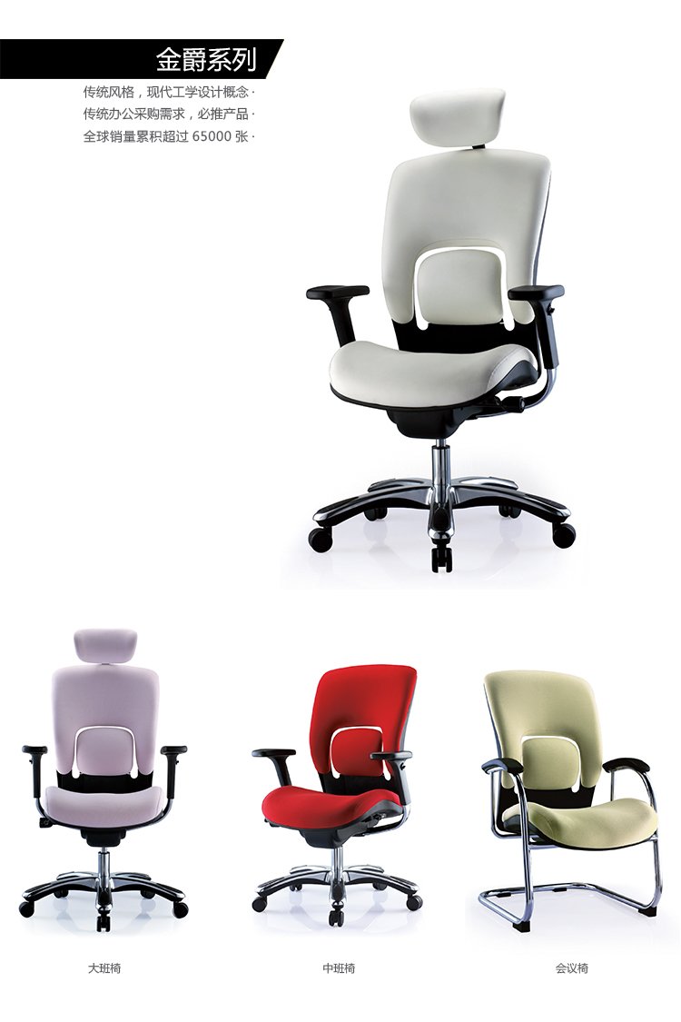 金爵系列采用独特的分离式腰枕设计,并使用塑胶的特性达成调整的功能,提供使用者最佳的腰部支撑;