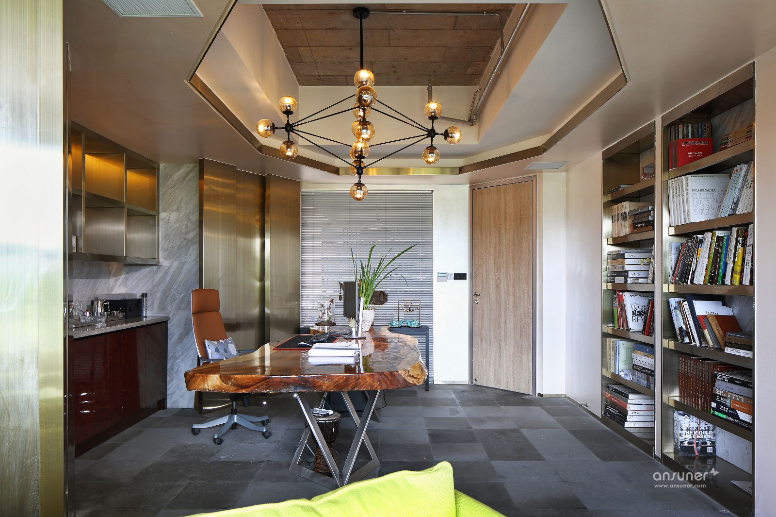 各种文化的碰撞,各种材质的尝试,尤其是废旧材料的利用,讲究环保与节能,绿色装修,自然古朴。会议区与交通区域融合,达到节约空间的目的。公司LOGO背景寓意为设计师通过敏捷的设计能力,让思想闪光。
